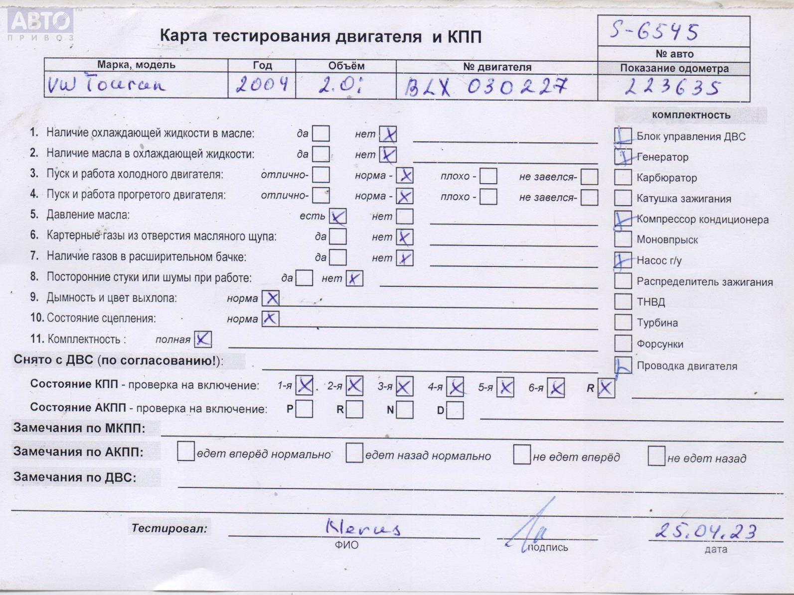 | Марка / Модель / Год: | Volkswagen Touran 2004 |