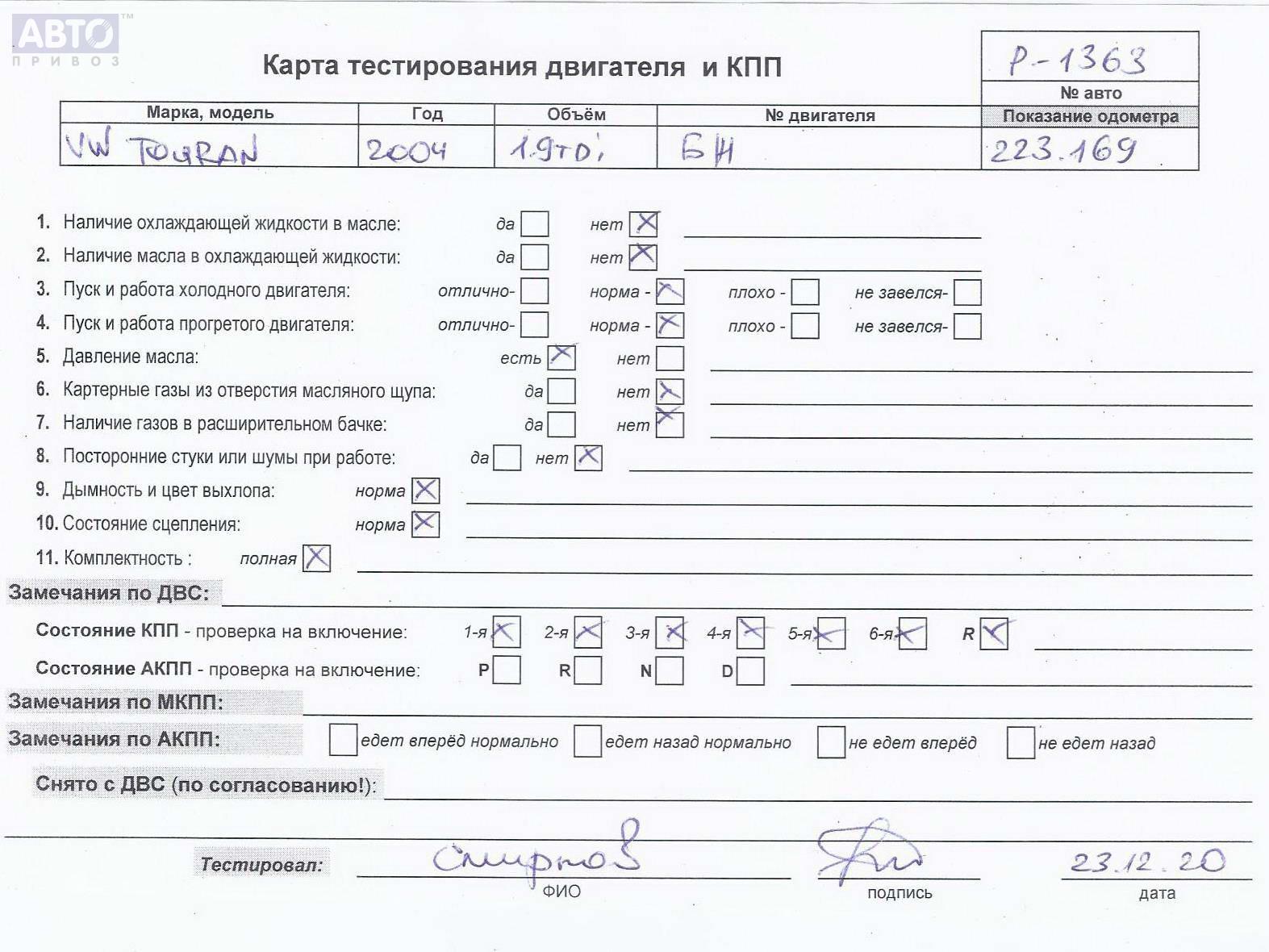 | Марка / Модель / Год: | Volkswagen Touran 2004 |
