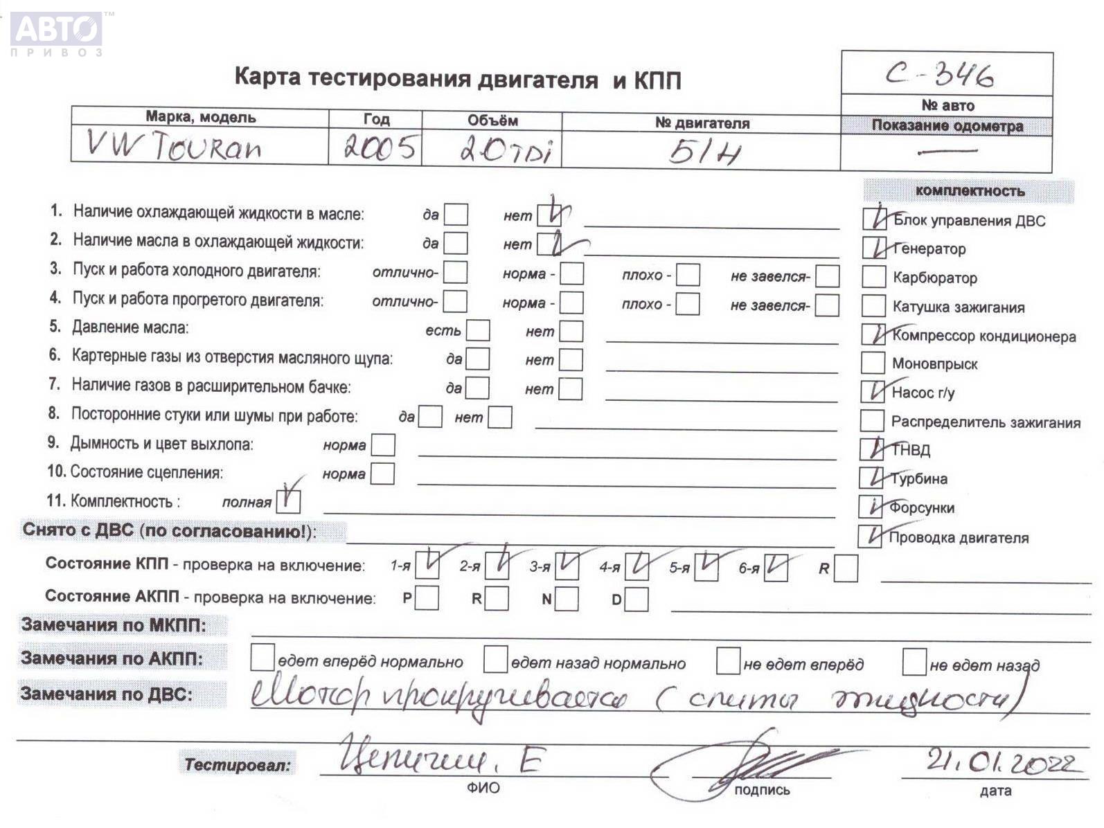 | Марка / Модель / Год: | Volkswagen Touran 2005 |