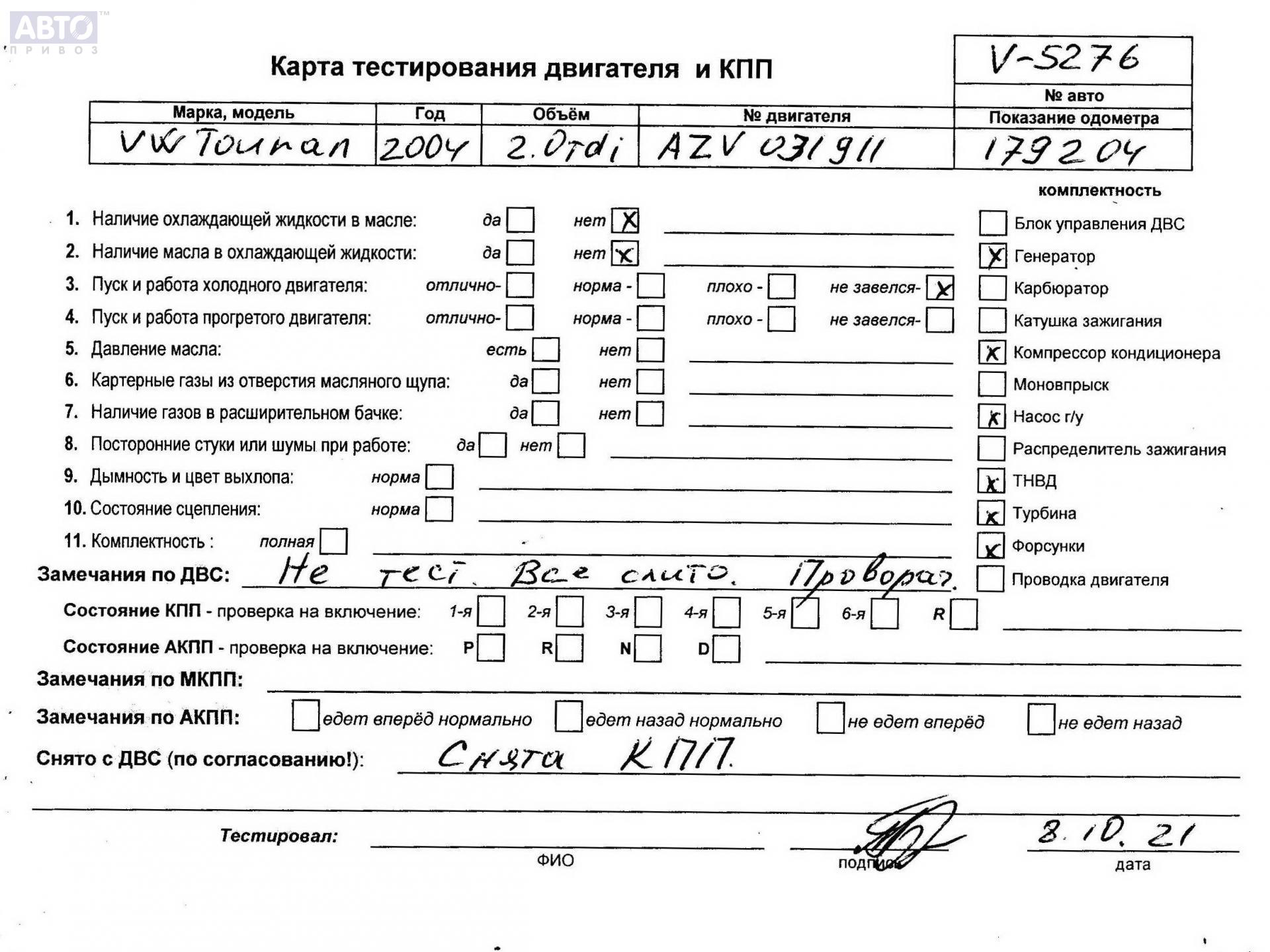 | Марка / Модель / Год: | Volkswagen Touran 2004 |