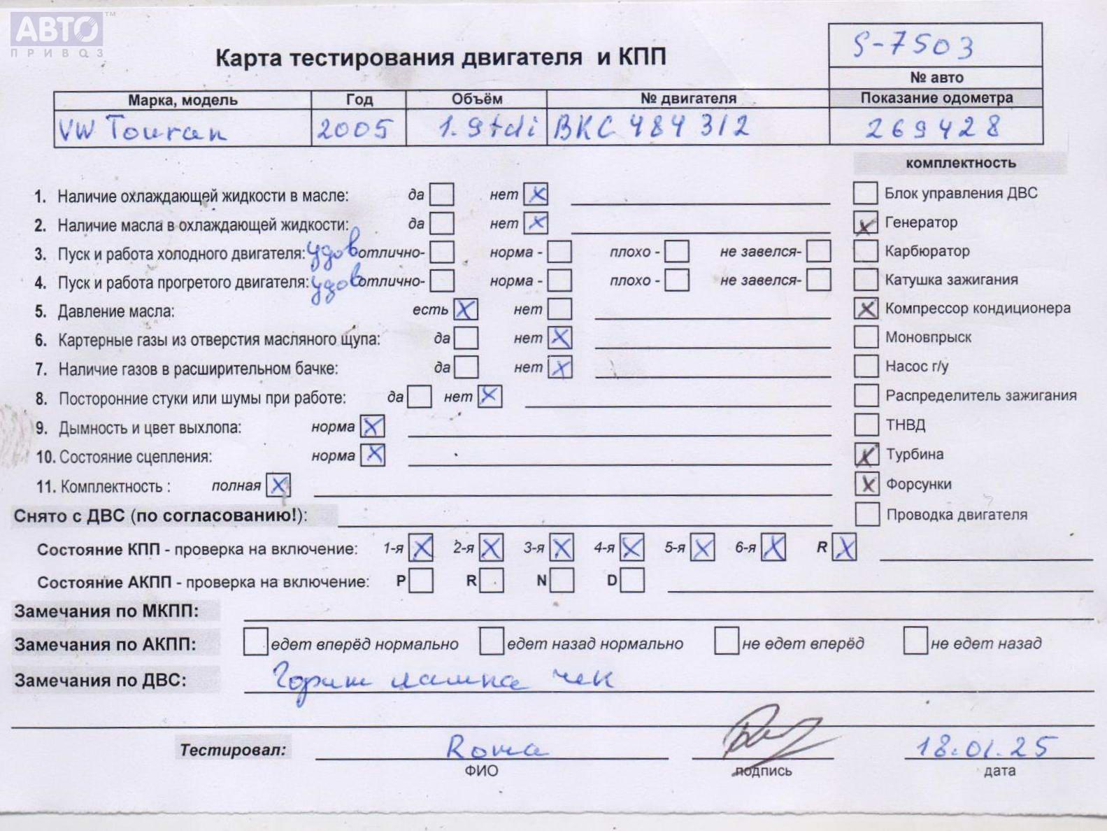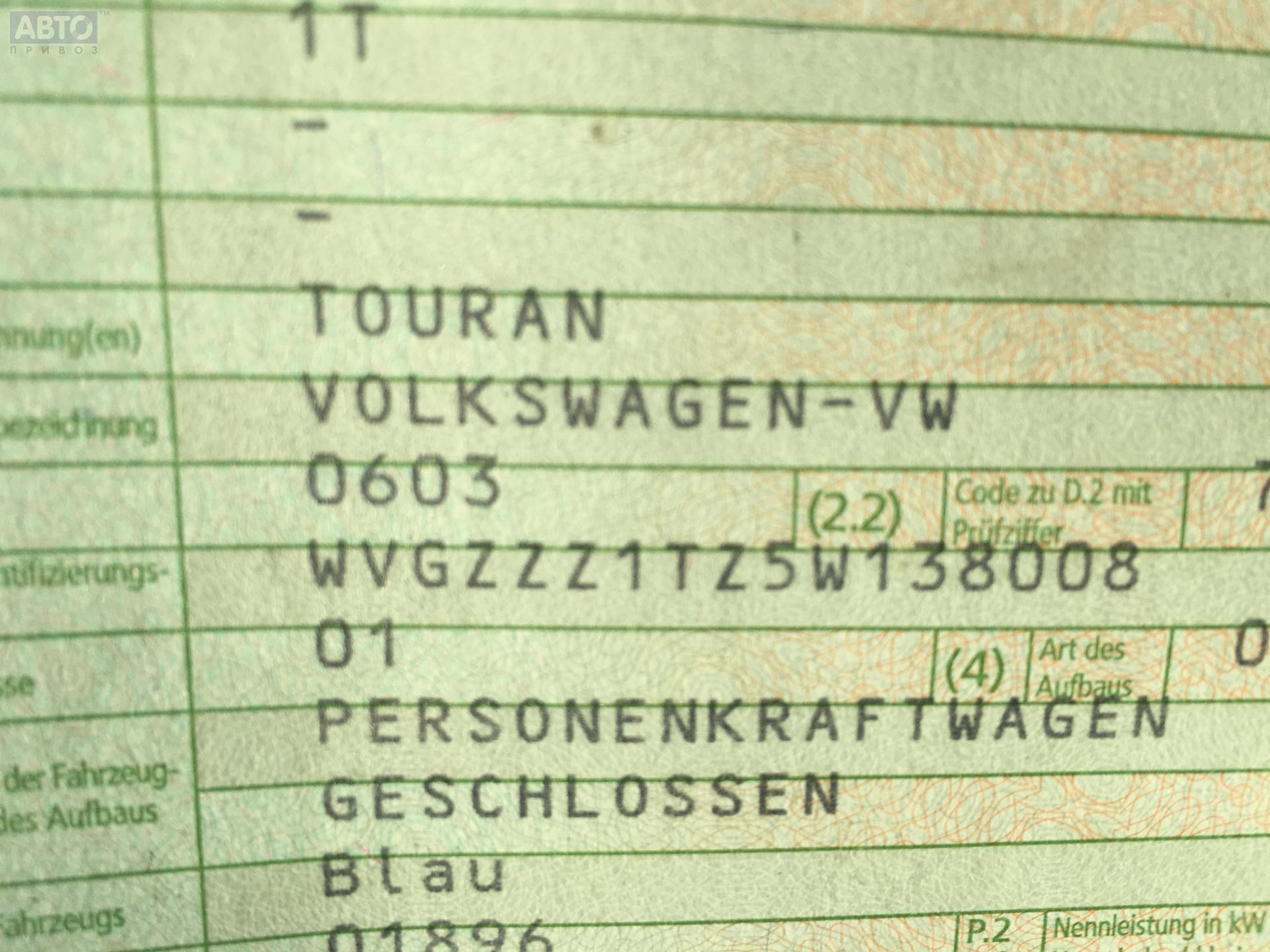 | Марка / Модель / Год: | Volkswagen Touran 2005 |