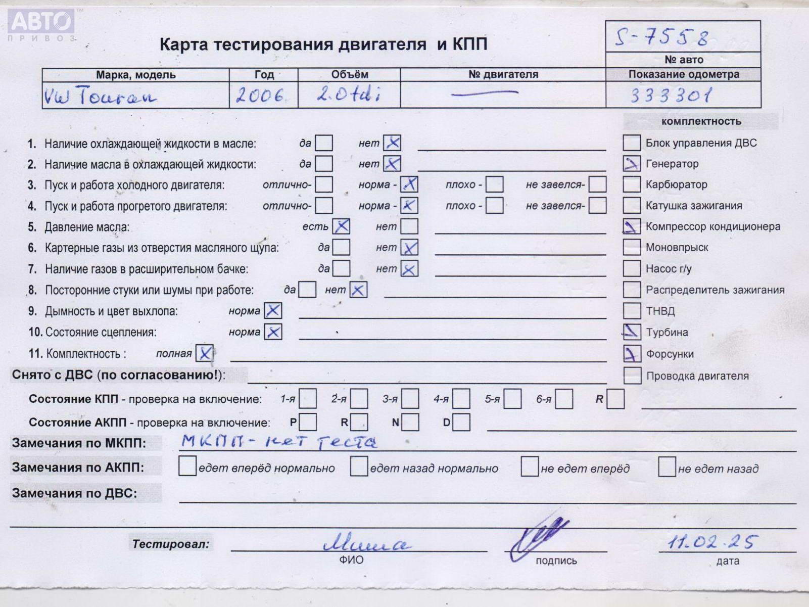 | Марка / Модель / Год: | Volkswagen Touran 2006 |