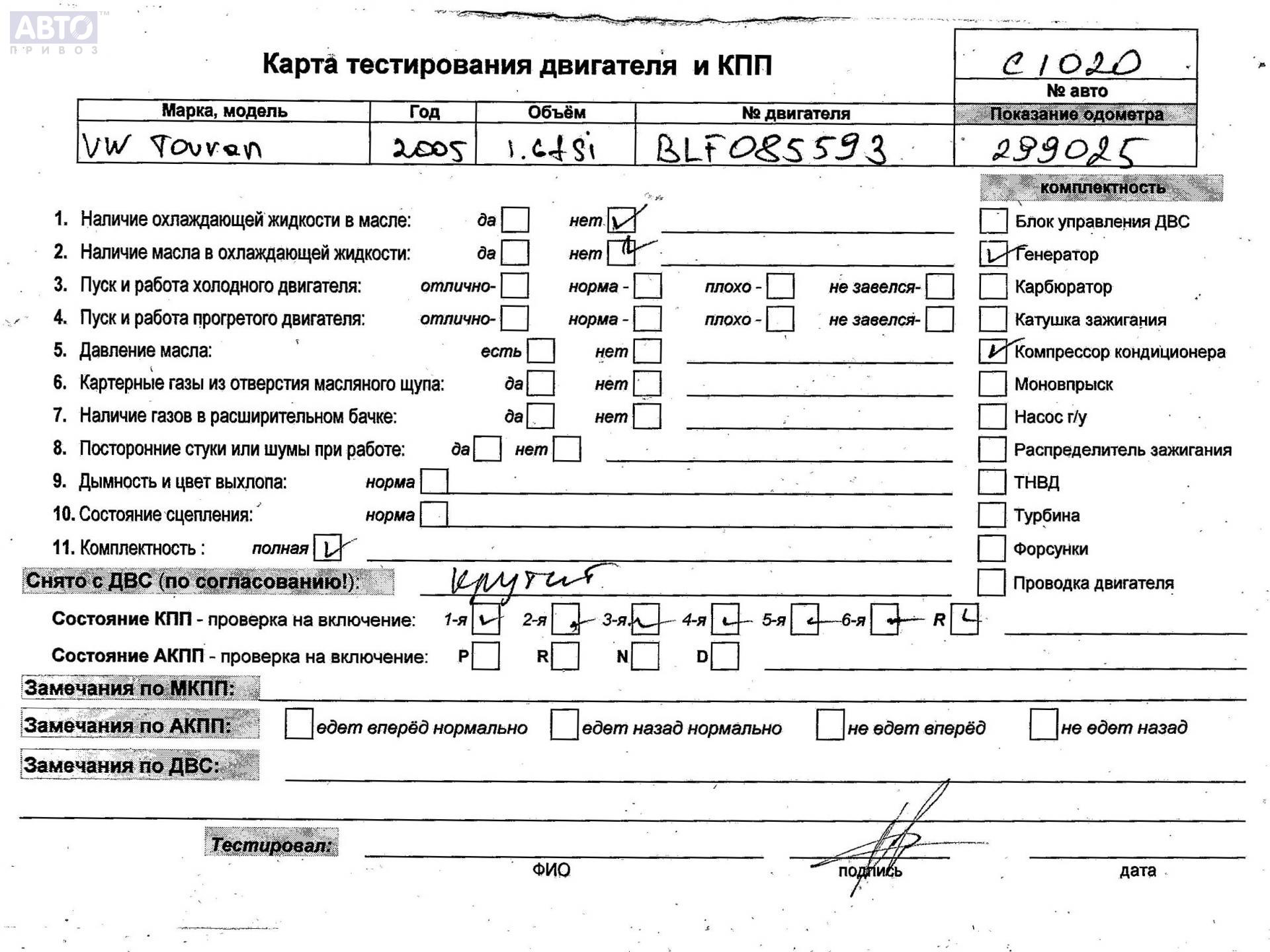 | Марка / Модель / Год: | Volkswagen Touran 2005 |