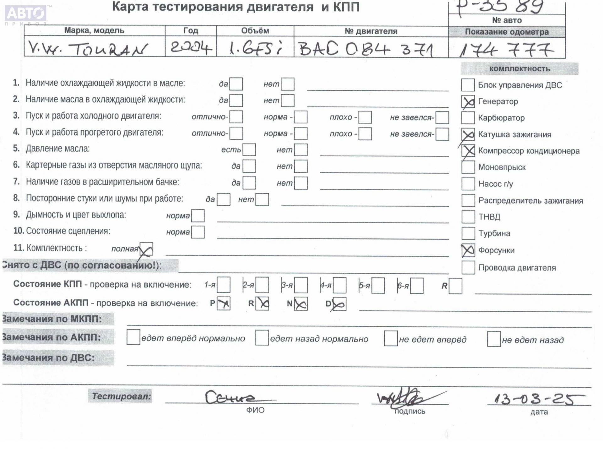 | Автомобиль / VIN: | P3589 WVGZZZ1TZ4W135845 |