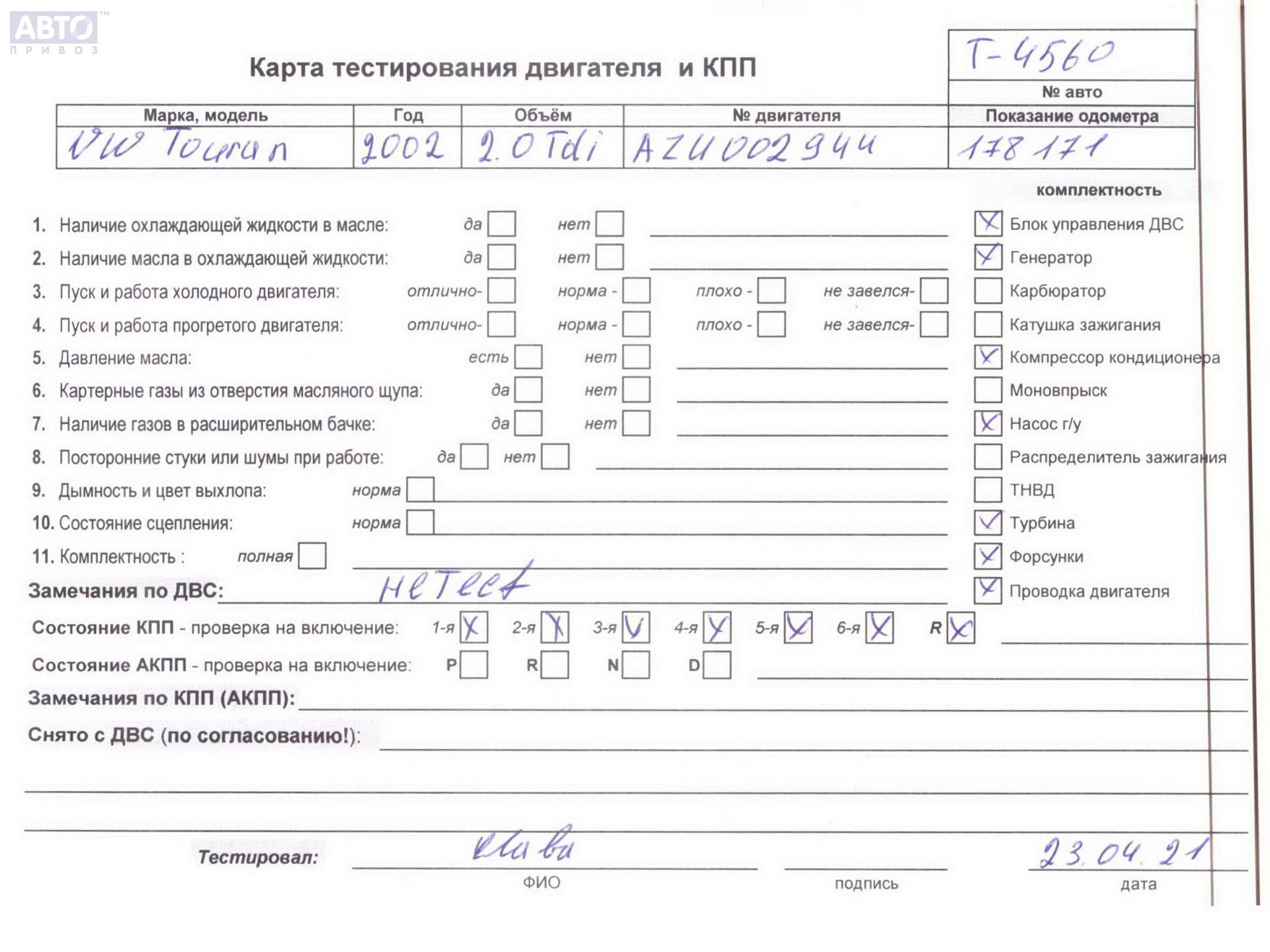 | Марка / Модель / Год: | Volkswagen Touran 2003 |