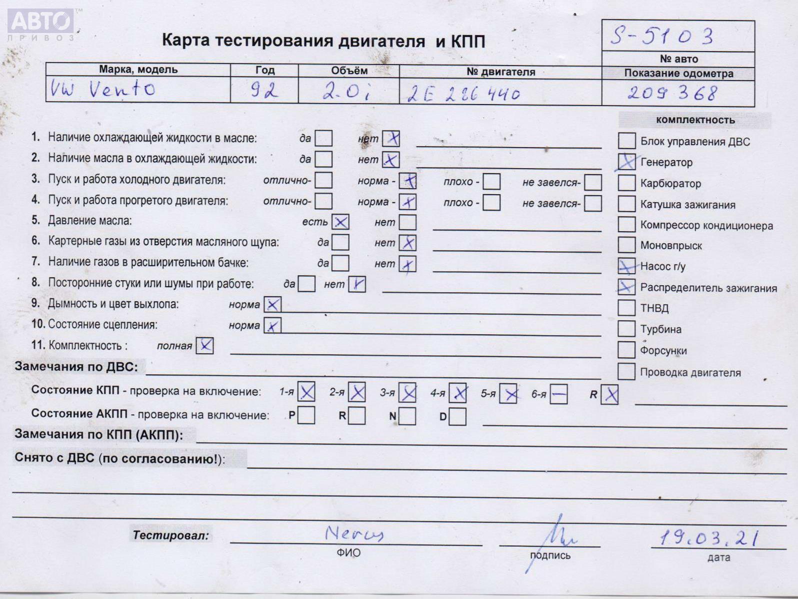 | Марка / Модель / Год: | Volkswagen Vento 1992 |