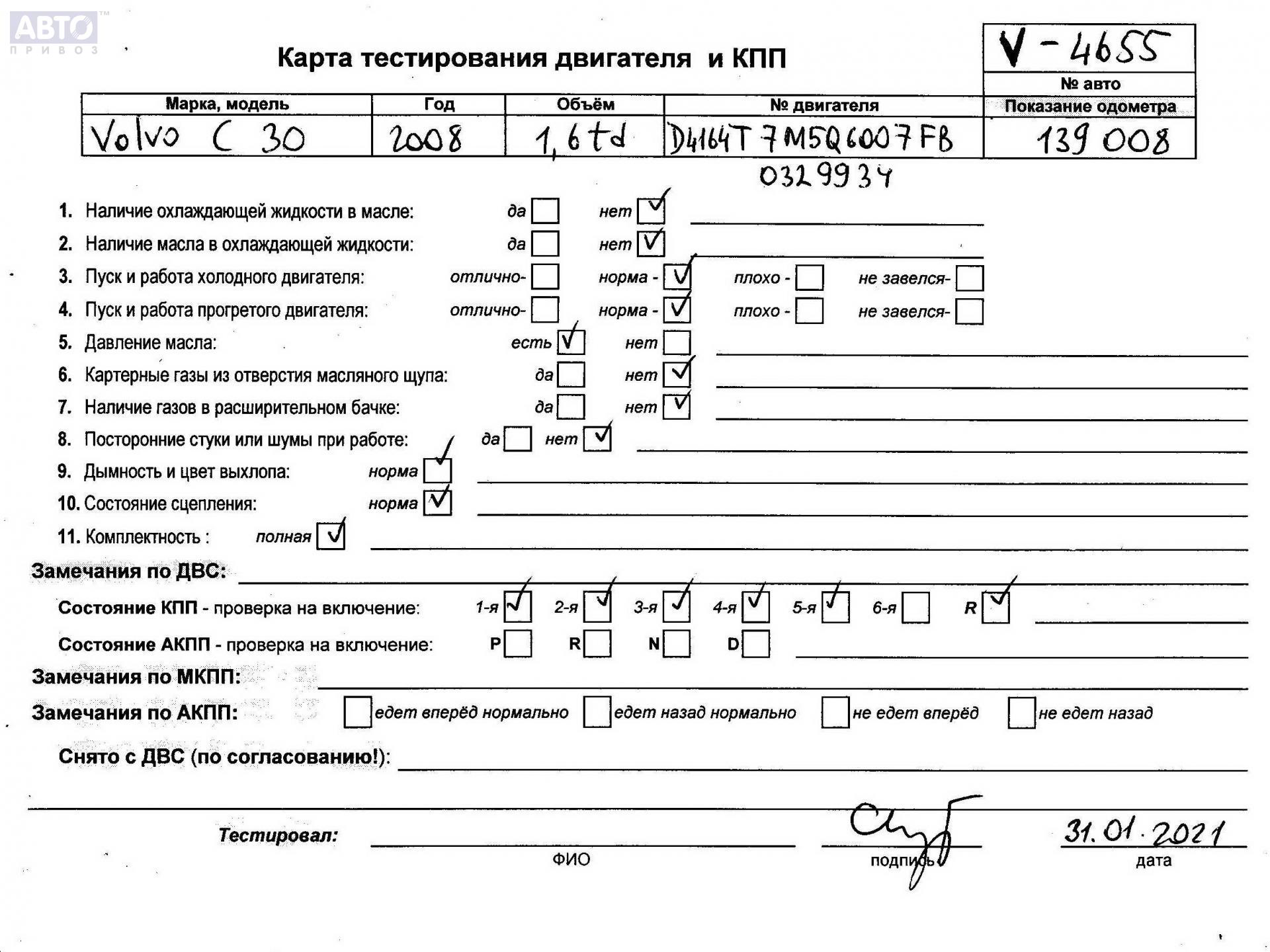 | Марка / Модель / Год: | Volvo C30 2008 |