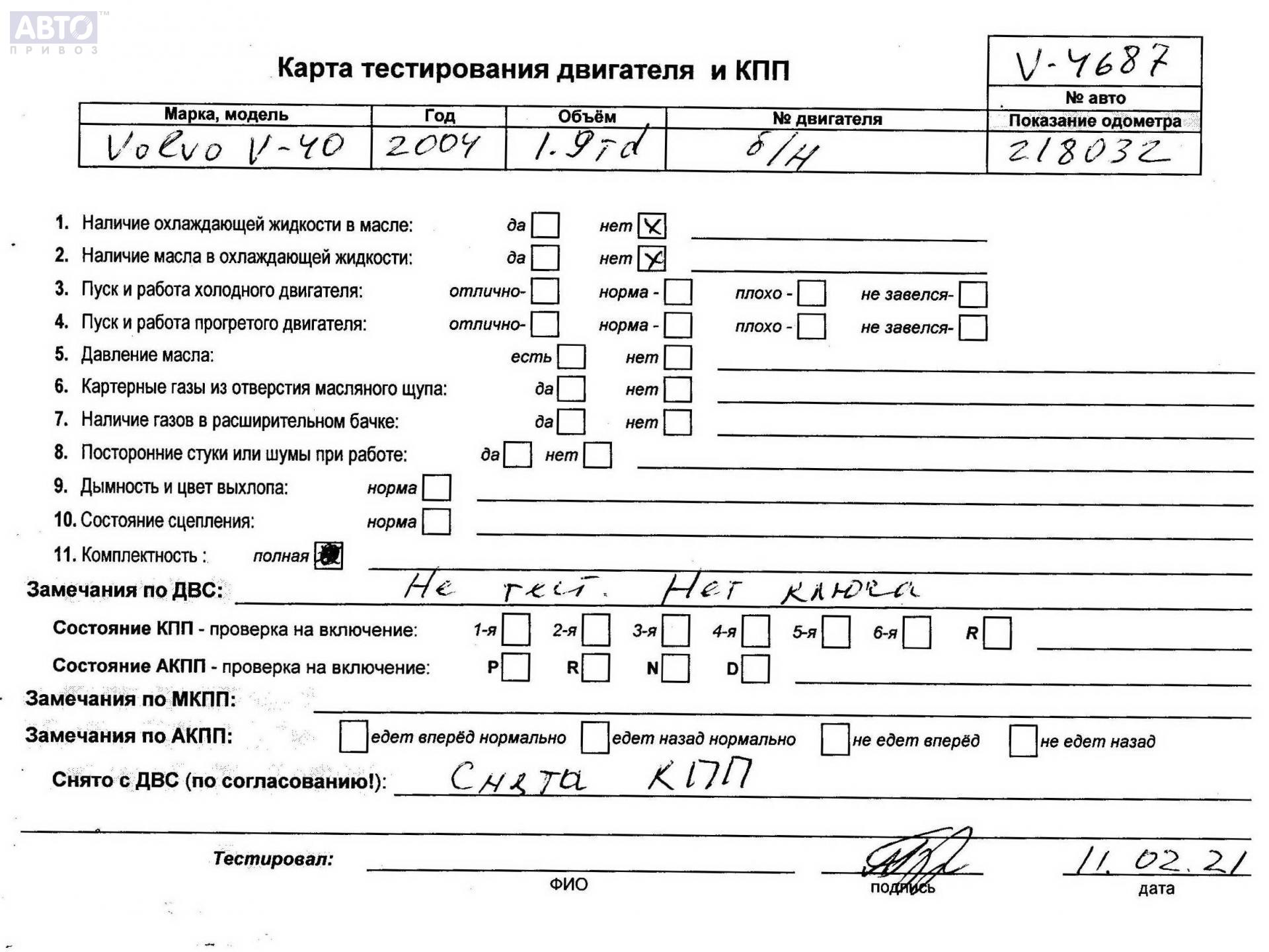 | Автомобиль / VIN: | V4687 YV1VW70924F118844 |