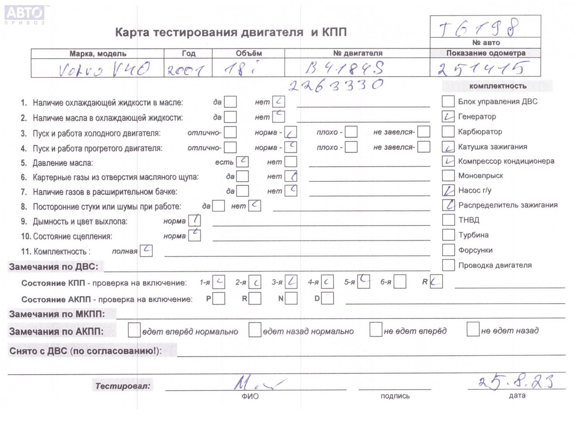 | Автомобиль / VIN: | T6198 YV1VW14K31F673646 |