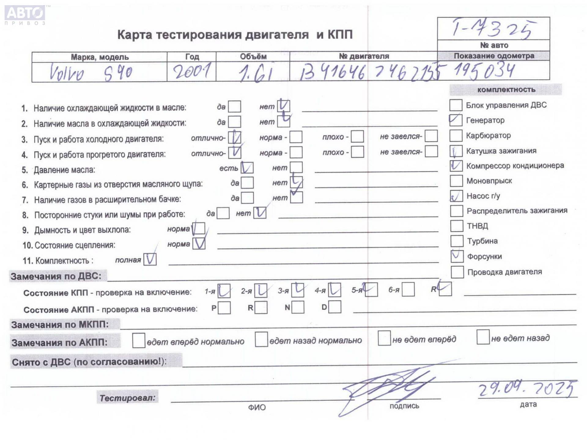 | Автомобиль / VIN: | T7325 YV1VS10K31F736088 |