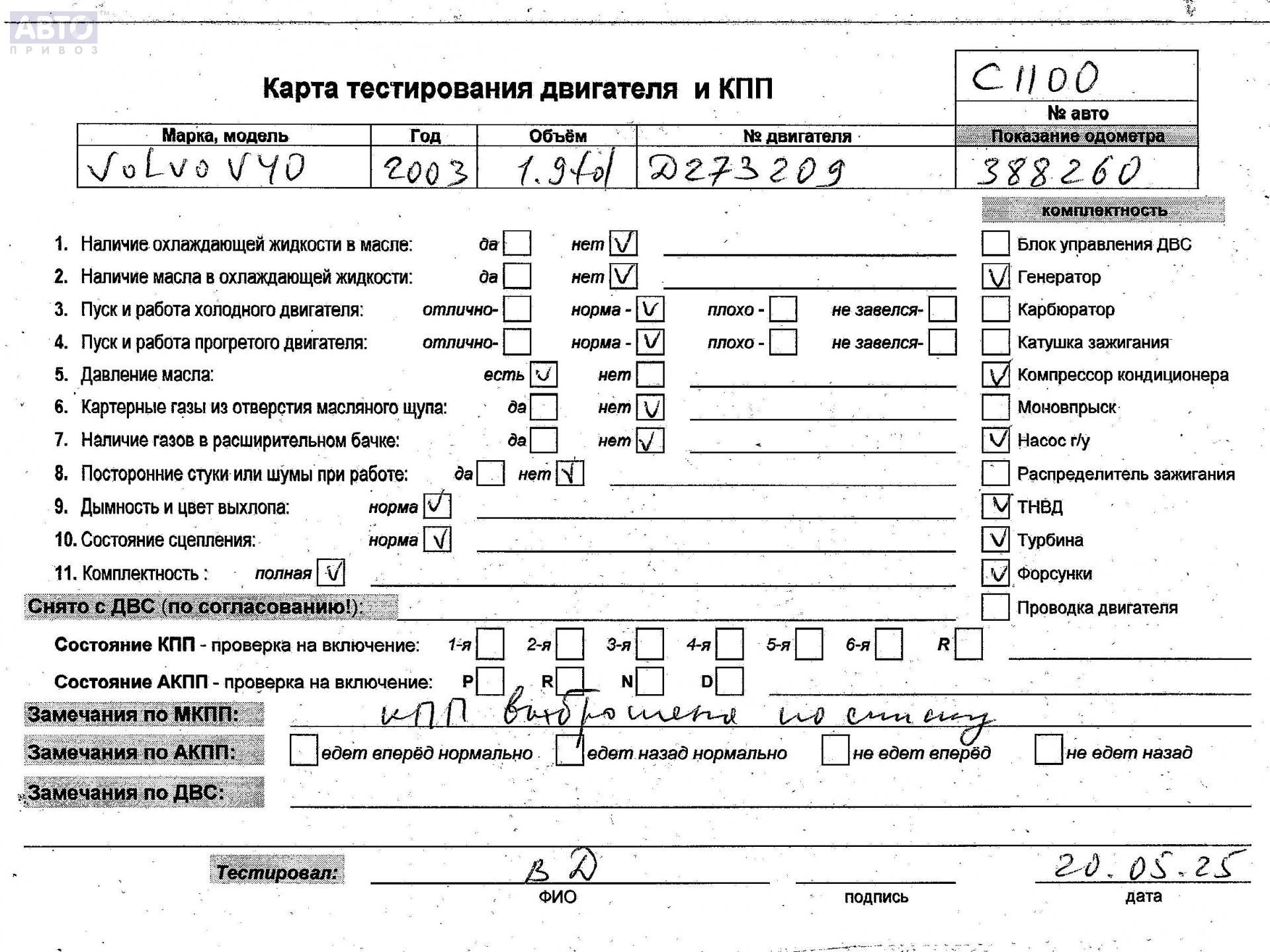 | Марка / Модель / Год: | Volvo S40 / V40 (1995-2004) 2003 |