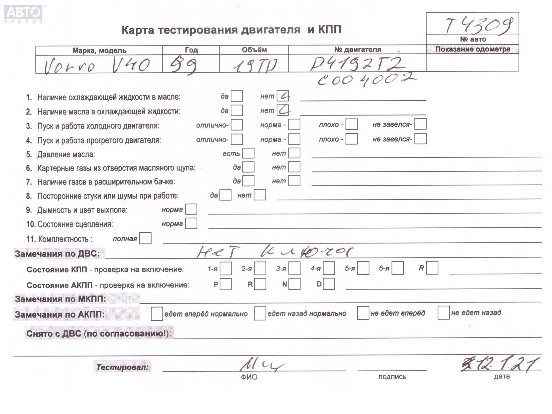 | Автомобиль / VIN: | T4309 YV1VW7313XF375192 |