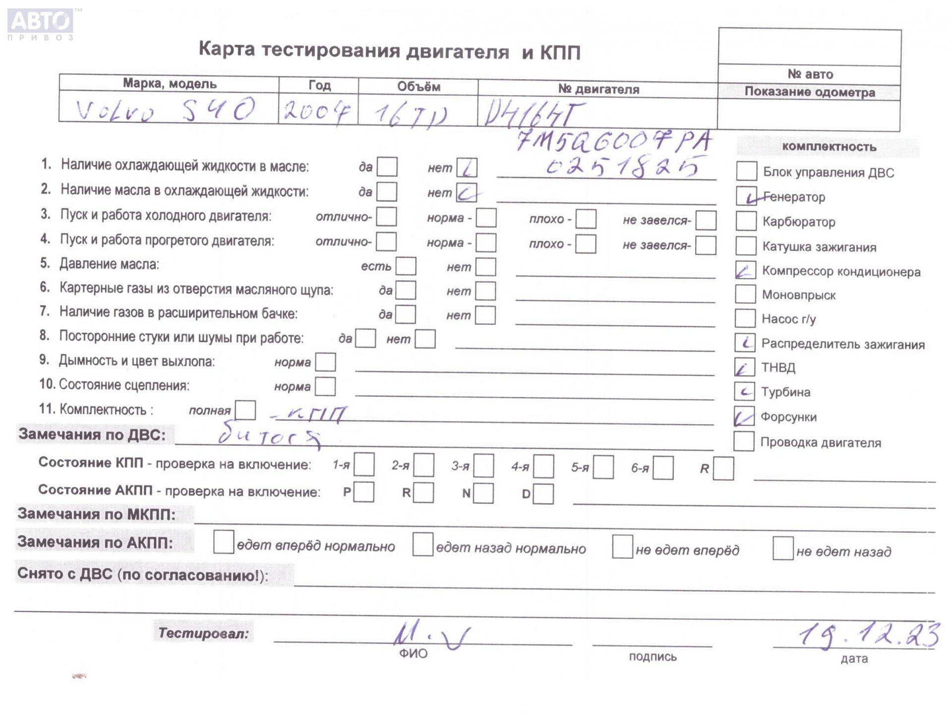 | Марка / Модель / Год: | Volvo S40 / V50 (2004-2013) 2007 |