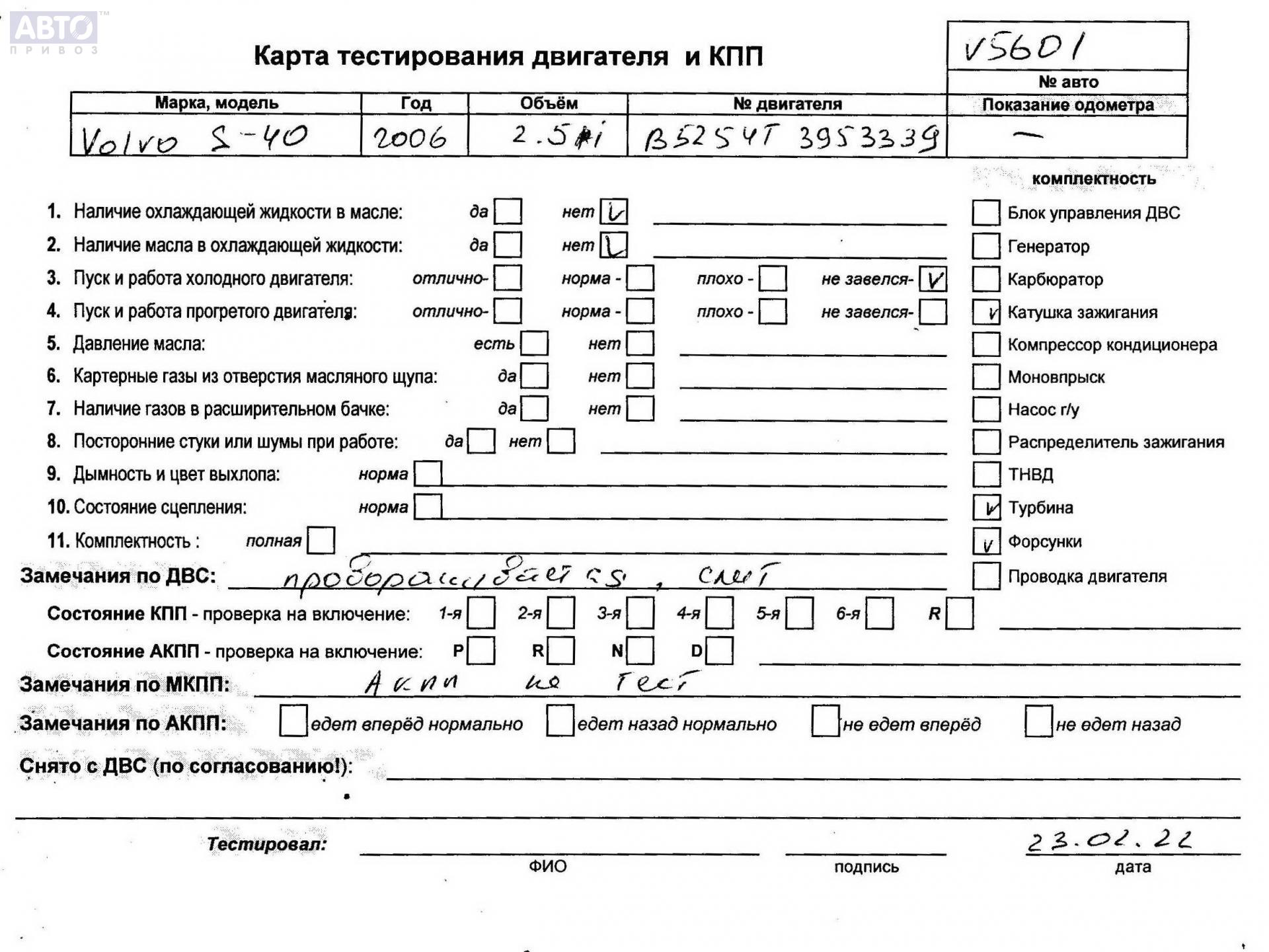 | Марка / Модель / Год: | Volvo S40 / V50 (2004-2013) 2006 |