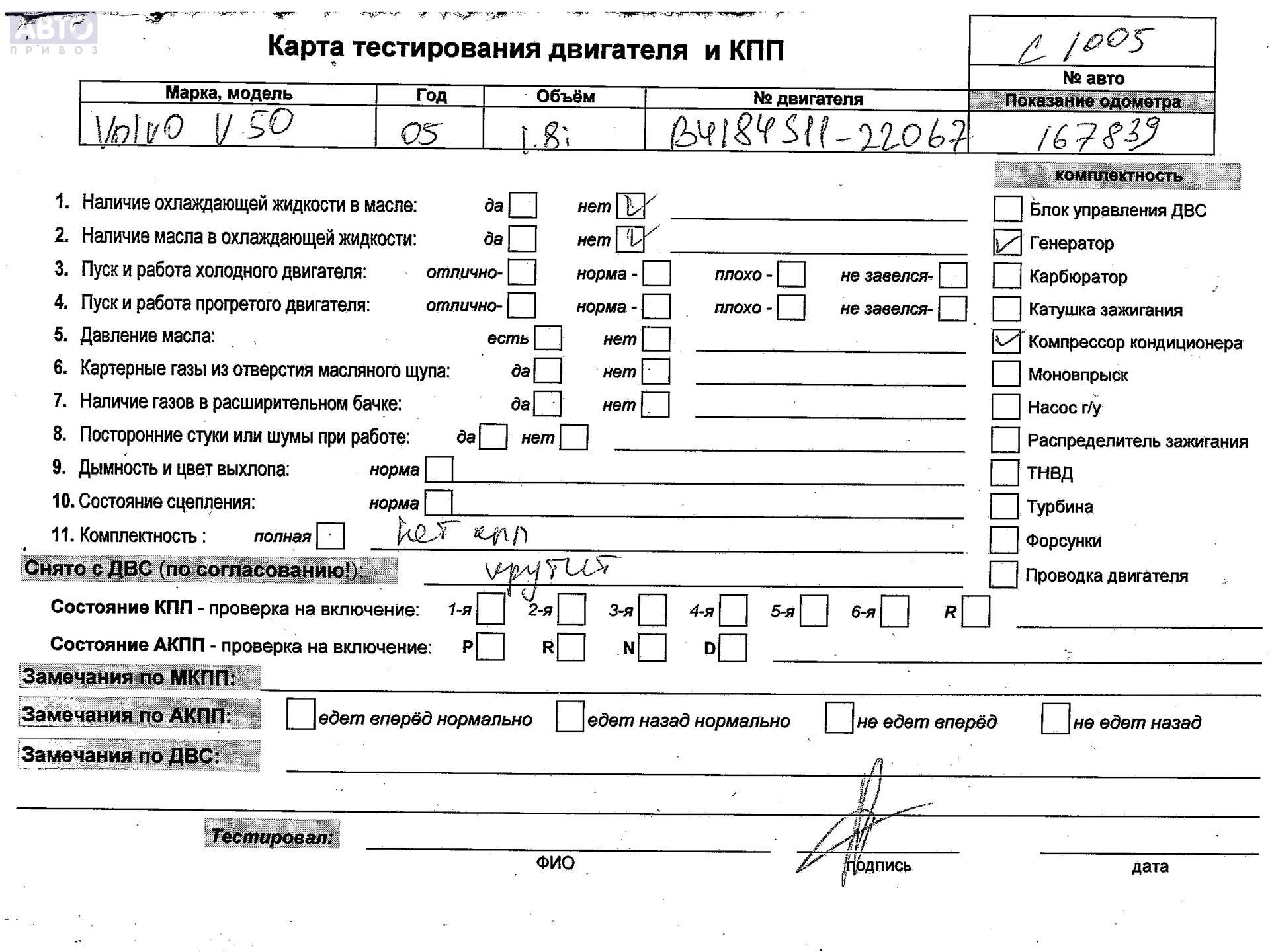 | Автомобиль / VIN: | C1005 YV1MW214252119463 |