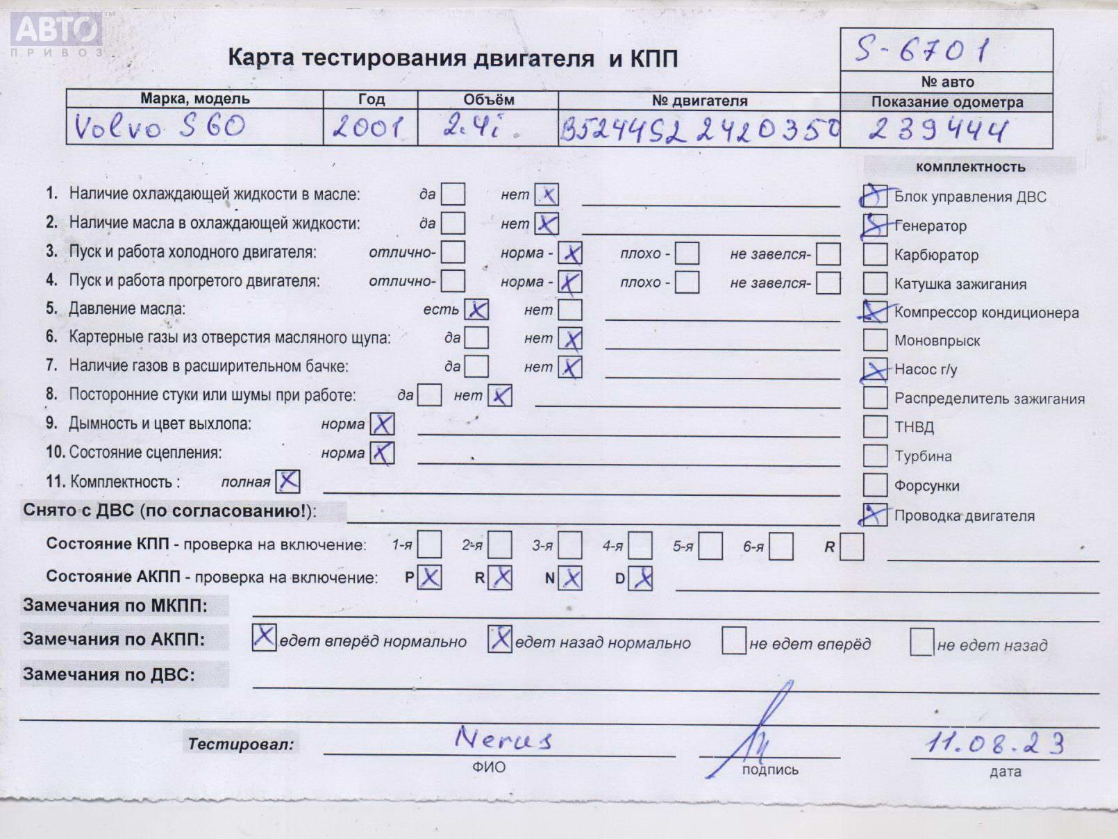 | Марка / Модель / Год: | Volvo S60 2001 |