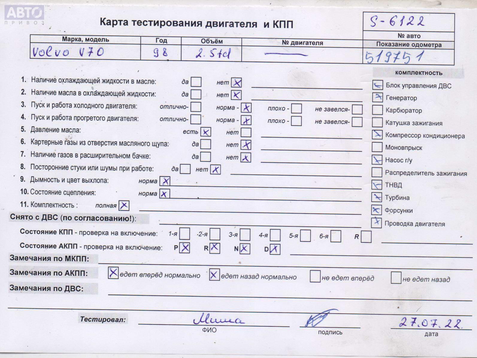 | Автомобиль / VIN: | S6122 YV1LW7206W2509914 |