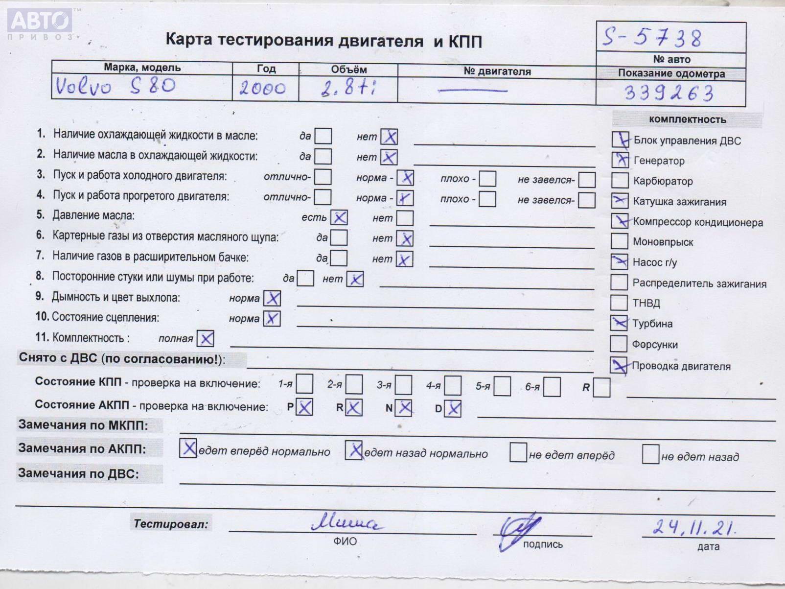 | Марка / Модель / Год: | Volvo S80 2000 |