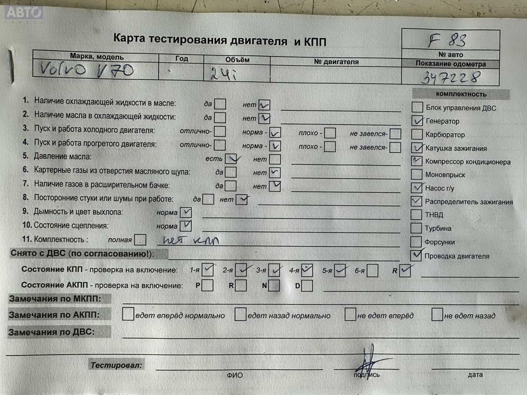| Марка / Модель / Год: | Volvo V70 (2000-2007) 2001 |