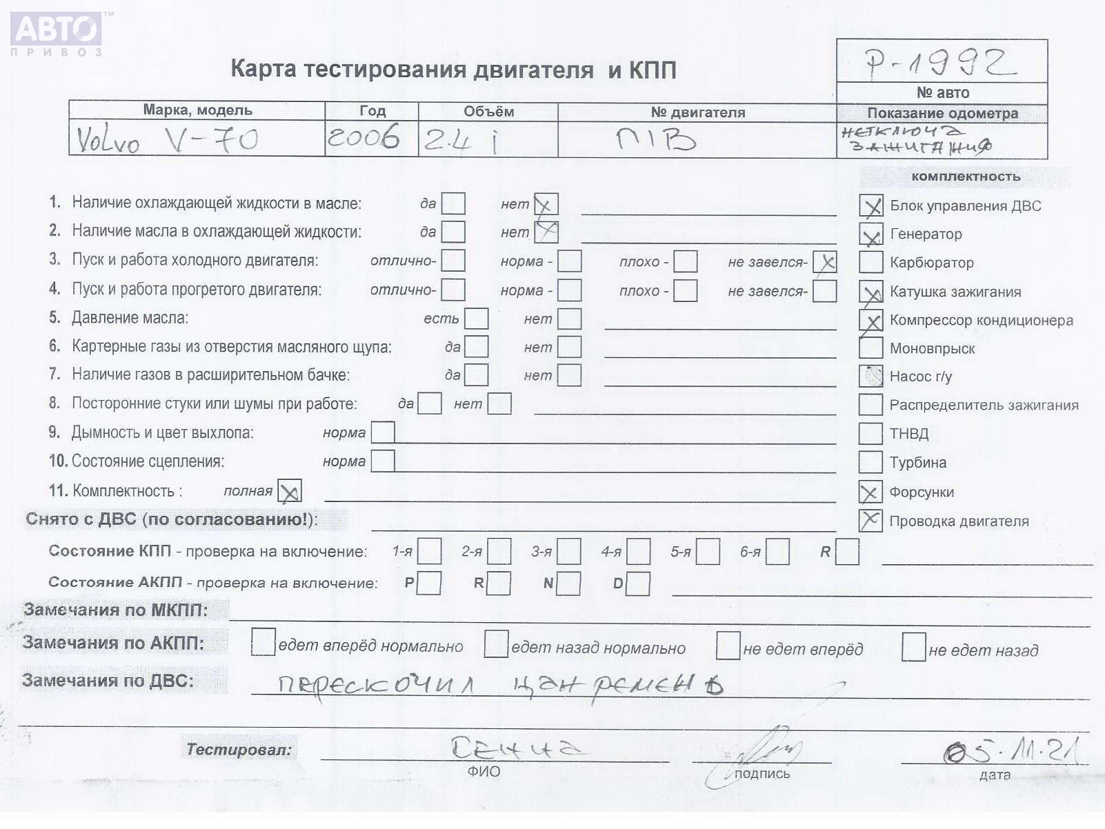 | Марка / Модель / Год: | Volvo V70 (2000-2007) 2006 |