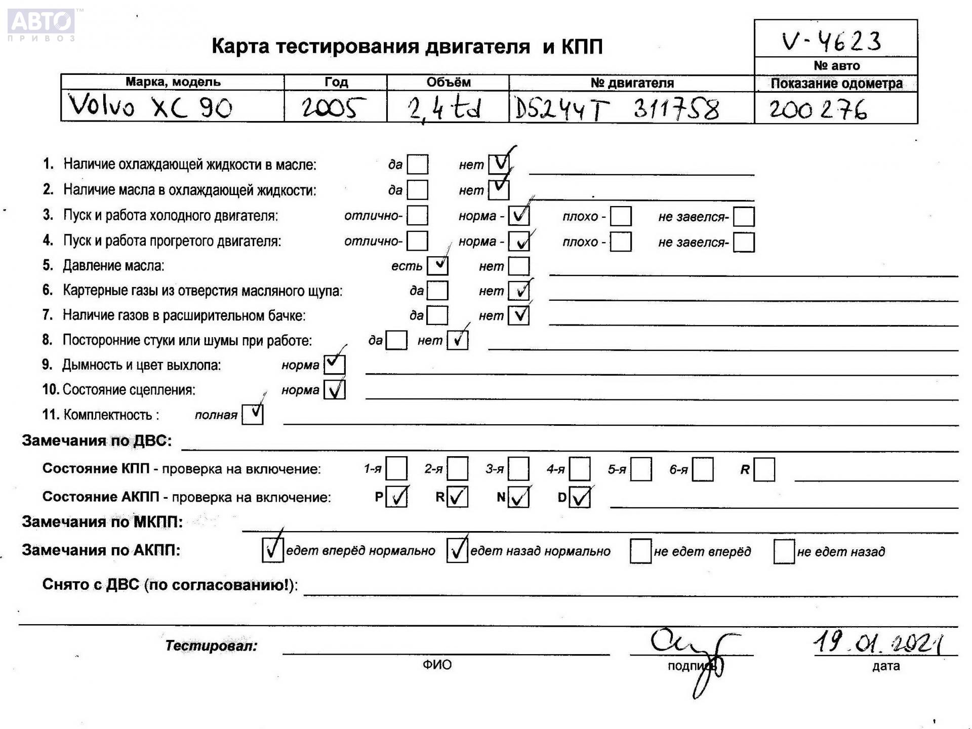 | Автомобиль / VIN: | V4623 YV1CZ796761240801 |